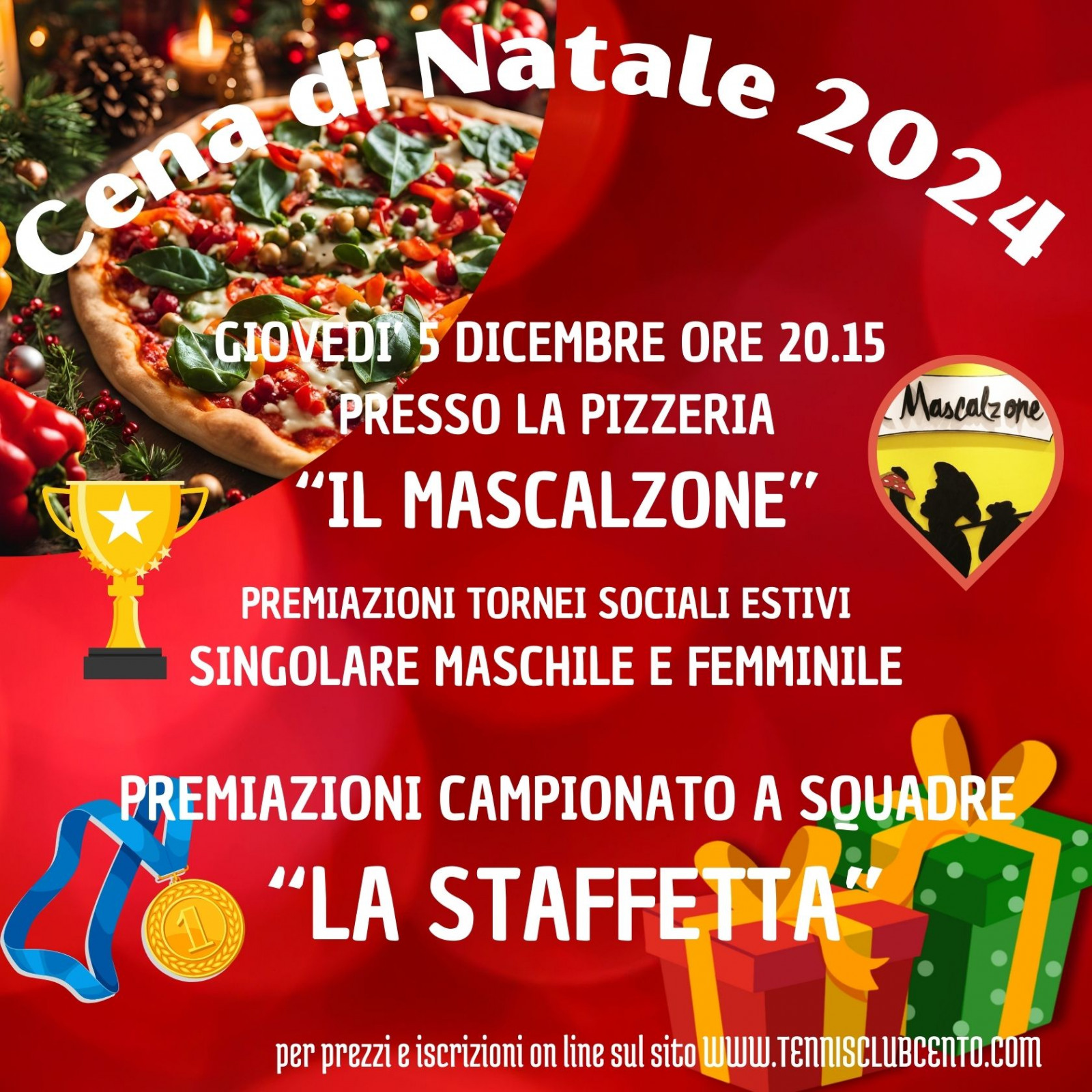 Come tutti gli anni è un piacere invitare tutti i soci, le loro famiglie e amici a partecipare alla Cena Di Natale e della Staffetta prevista il 5/12/2024 alle ore 20.15 presso Ristorannte Pizzeria Il Mascalzone.