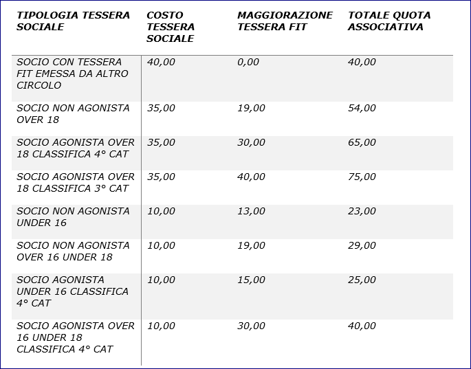Il circolo rilascia la tessera FIT solo ai propri associati in regola con il pagamento della quota sociale.