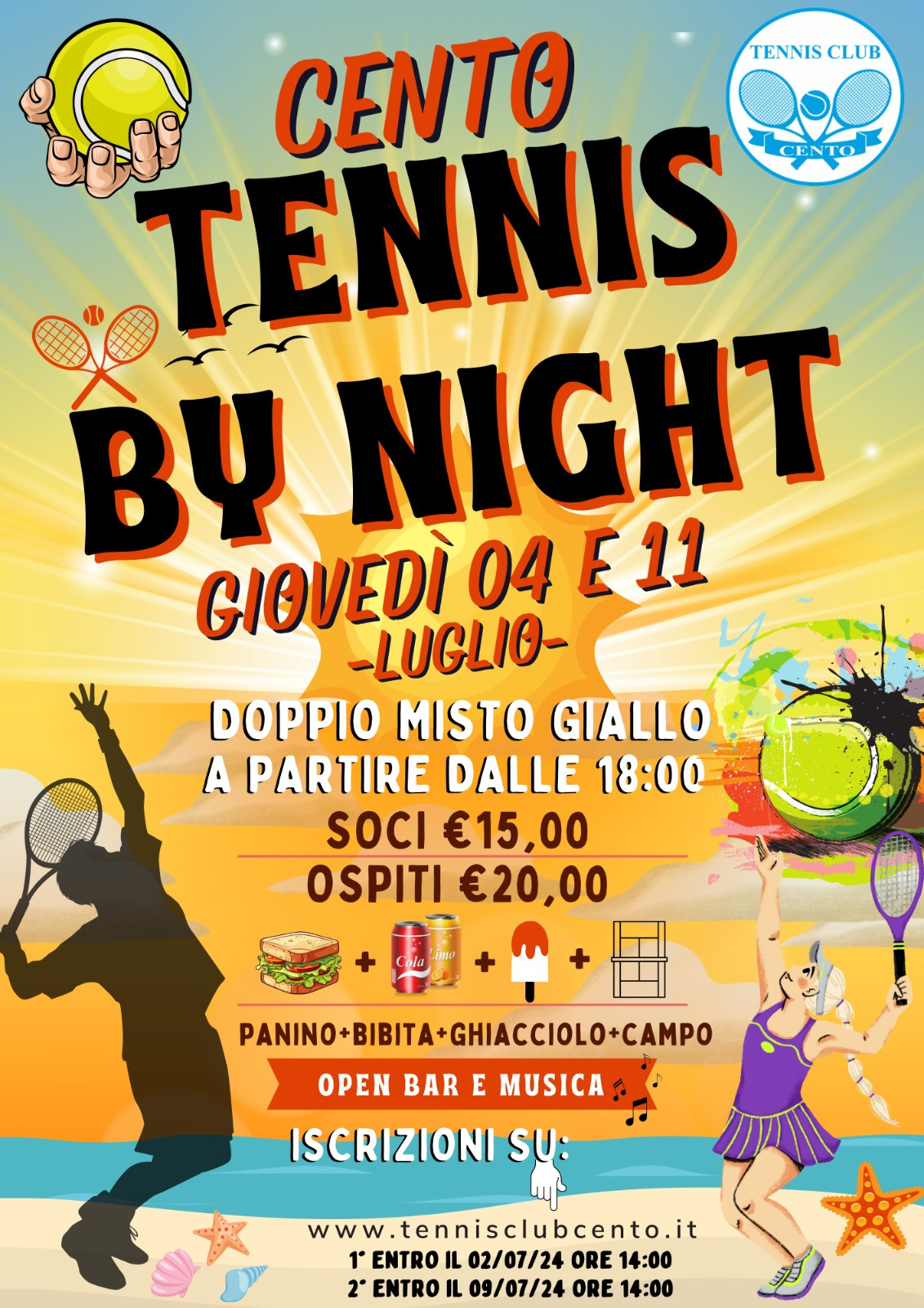 Dopo il successo dell'anno scorso il Tennis Club Cento organizza 2 tornei sociali di doppio misto giallo, edizione BY NIGHT 2024 a partire dalle 18:00